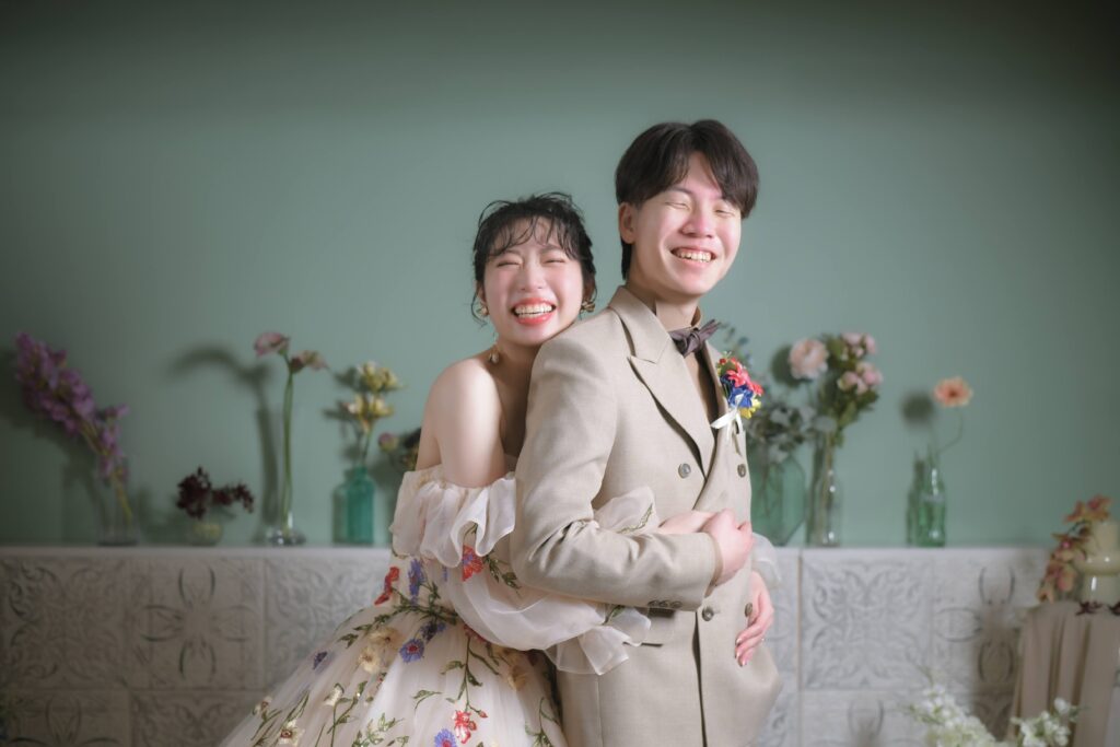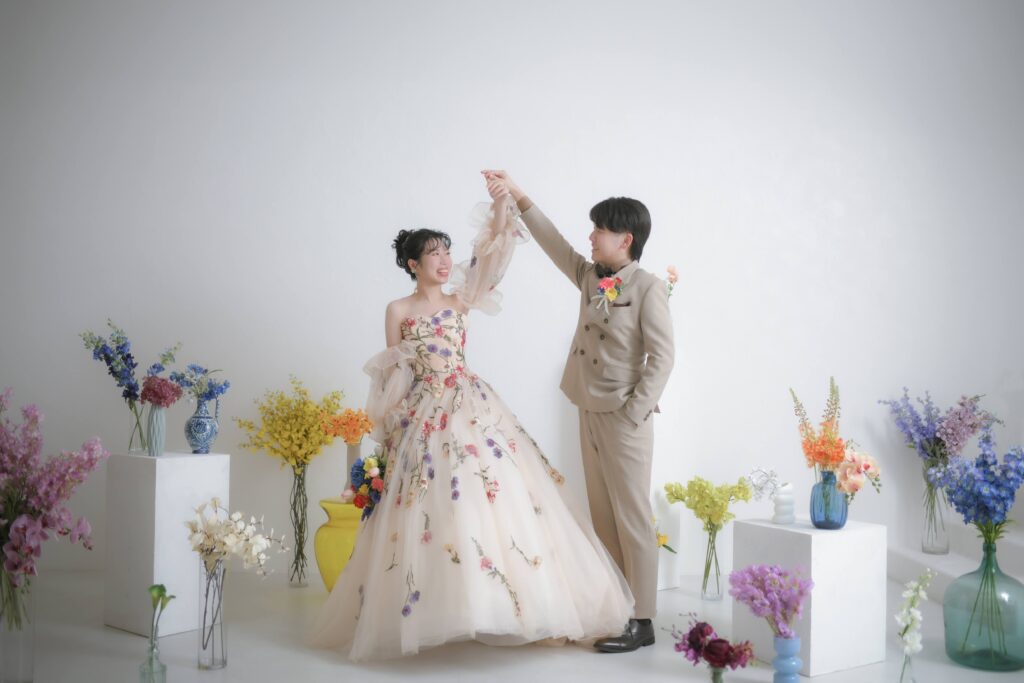 スタジオ内を色鮮やかなお花で満たした「フラワーコーディネート」でのフォトウェディングはいかがでしょうか?